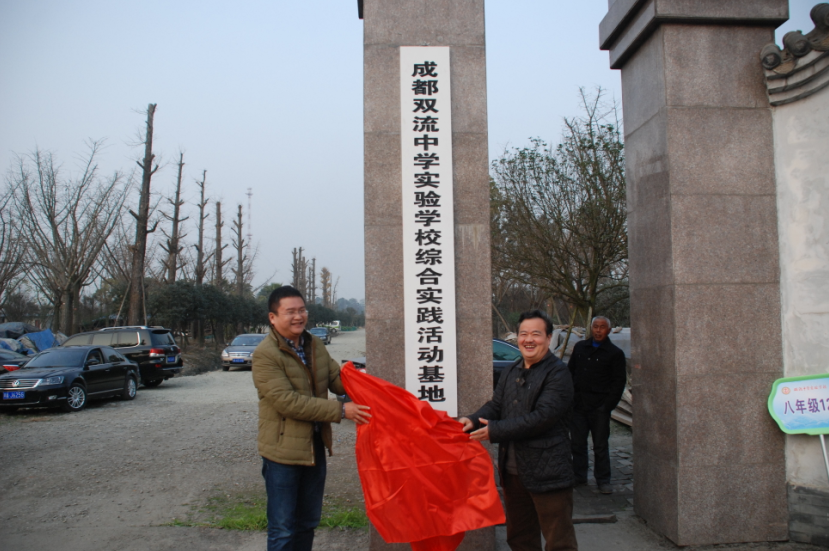 12月30日下午,双流中学实验学校综合实践活动彭镇种植基地现场揭牌仪式隆重举行。学校组织八年级各班种植小组组长及所有带队老师、指导教师参加仪式。双流县彭镇镇长宋晓东、彭镇人大副主任卢鸿、双流县教育局刘由远科长、金湾村党支部书记罗成祥、学校董事长陈廷富、学校校长高志文、副校长张润林、副校长王伟及教务处主任周宗友出席揭牌仪式。