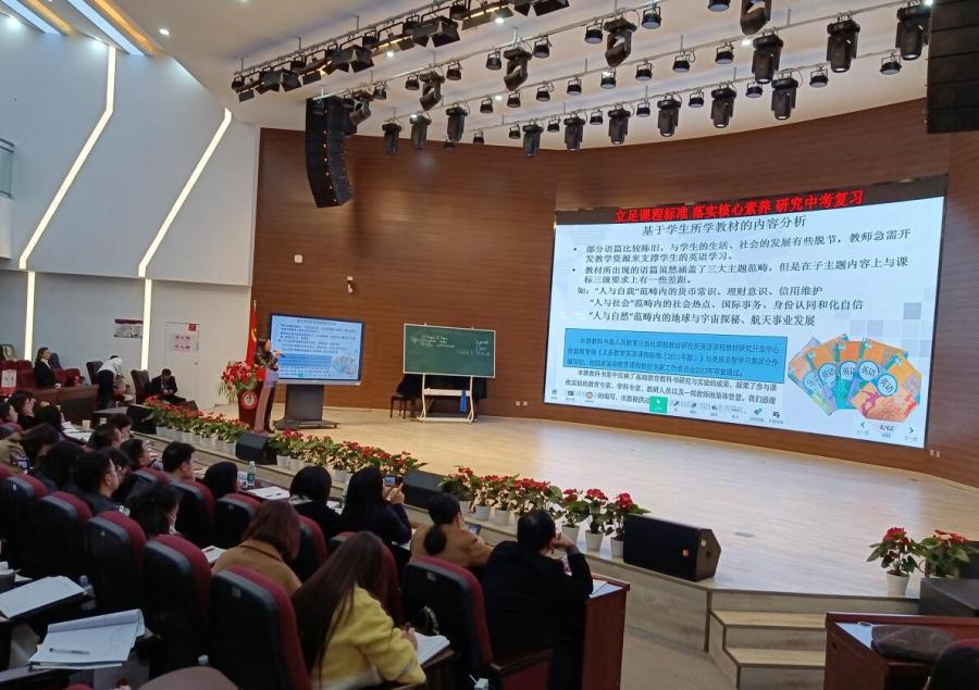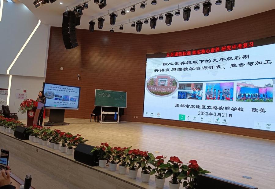 2023年3月21日,我校名师工作室导师、成都市英语特级教师和学科带头人欧英应成都市教科院的邀请,与工作室成员一起参加了主题为“立足课程标准、落实核心素养、研究中考复习”的全市初三英语复习教研会,并在会上做了 “核心素养视域下的九年级后期英语复习课教学资源开发、整合与加工”的专题讲座,得到了与会老师和专家的高度评价。