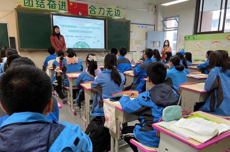 3月23日是世界气象日。我们的地球生态系统和人类社会文明,离不开适宜的天气、气候和水资源,今年的主题是“天气气候水,代代向未来”。由于气候变化,世界上许多地方的极端天气、气候和水事件正变得越来越频繁和强烈,我们比以往任何时候都更容易受到多种相关危害的影响。为了大力普及气象知识,弘扬科学精神,我校地理组向敏、刘晋希老师携手成都市气象局许晨、赵静两位高级工程师及双流区气象局科普成员邱利娟、廖利娟老师为我校七、八年级学生科普气象知识。