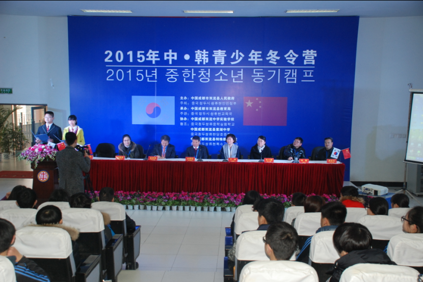 1月19日上午9:40,中韩青少年冬令营开营仪式在双流中学实验学校学术演讲厅举行。县政府副县长万琳致欢迎辞,并对韩方师生的远道而来表示热烈欢迎;同时韩方朴炯琯局长也在会上致答谢词,朴局长发言中提到了我国古代三国时期的文化,表达了他对中国传统文化的浓厚兴趣。开营仪式结束后韩国师生们饶有兴趣地参观了双流中学实验学校校园,并纷纷拍照留影。上午11:00和下午2:30,师生们走进了双中实验校的课堂,与中方学生同上一堂课,体验了一堂趣味英语活动课,并学习了中国书画和太极拳,领略了中国传统文化的独特魅力。接下来的两天,师生们将利用闲暇时间参观古镇黄龙溪,熊猫基地、金沙遗址等景点,观看火龙表演、水龙吟,了解神秘的古蜀文化和独特的青铜文明,并与大熊猫来一次近距离亲密接触。在21日于双中实验校举行的闭营仪式上,两校师生还将共同举行表演活动。双方丰富多彩的交流活动,定会给中韩学生的初中生活留下美好的回忆,并将成为两国青少年共筑友谊的桥梁。