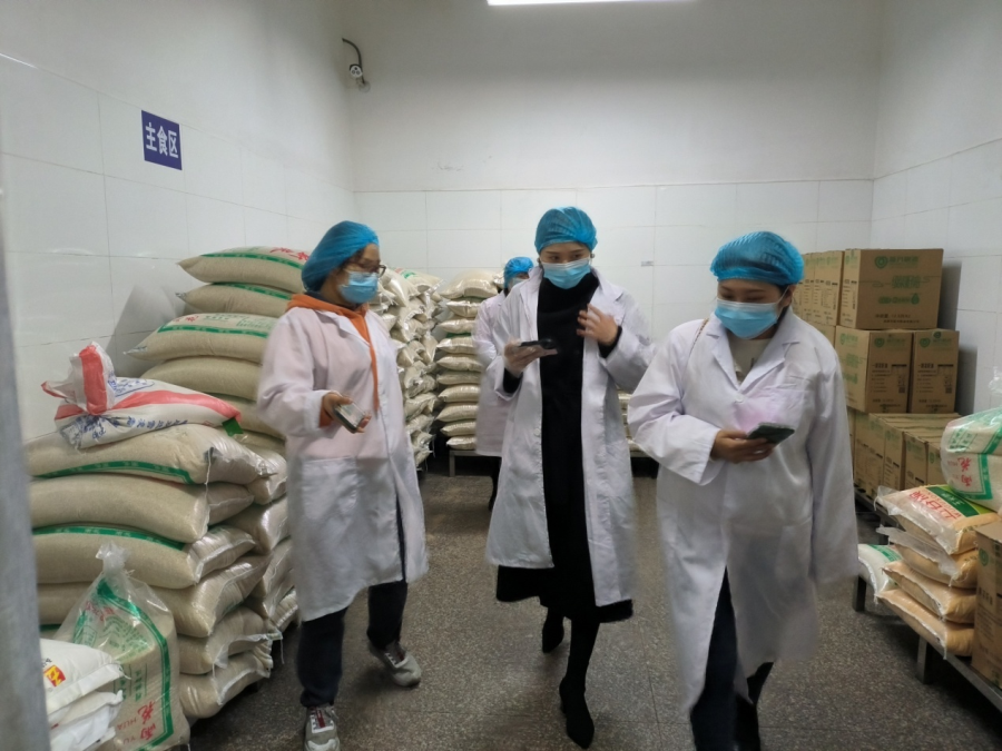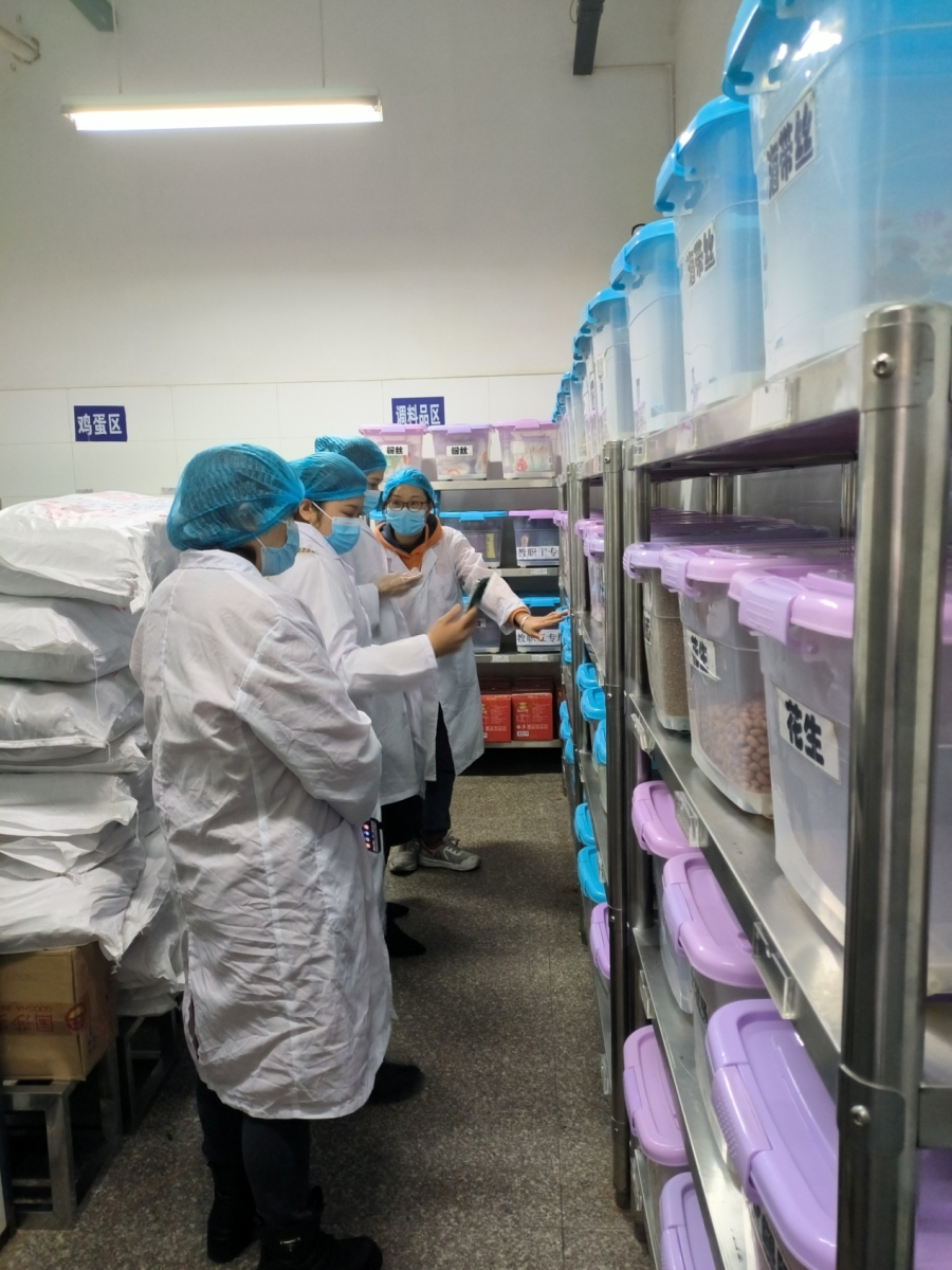 一、小学家委会代表在食堂主食库参观。