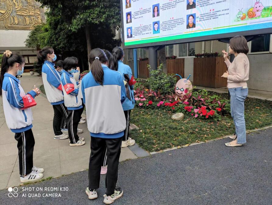 进入校园,精英志愿者们就被学校大门两侧的6只蜗牛所吸引。叶老师热情的给同学们介绍:蜗牛,是“蜗行不止,慢步天下”文化精神品质的形象体现,学校的校徽也是以蜗牛的形象设计。整个标志形、神皆似已知多姿多彩、怀着远大梦想,虽艰难缓慢,但执着前行,永不放弃的小蜗牛。