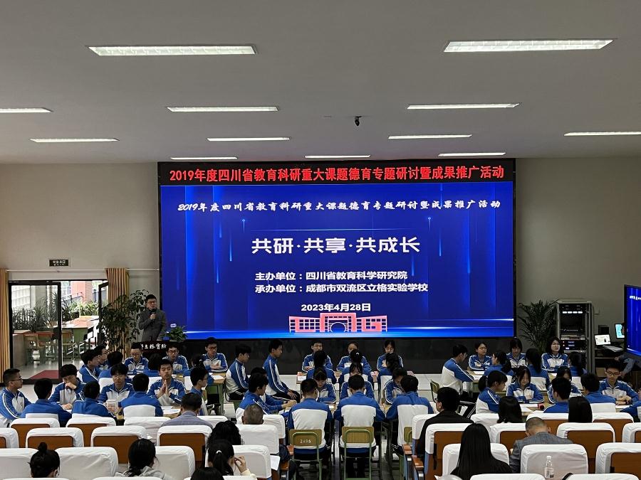 2019年度四川省教育科研重大课题德育专题研讨暨成果推广会于2023年4月28日在成都市双流区立格实验学校举行。本次活动由四川省教育科学研究院主办,2019年度四川省教育科研重大课题牵头研究单位成都市双流区立格实验学校承办,协同研究单位成都七中育才学校汇源校区、自贡市富顺县安和实验学校、成都市新都区机关幼儿园、雅安市宝兴县硗碛藏族九年一贯制学校、四川省汉源县第一中学协办。