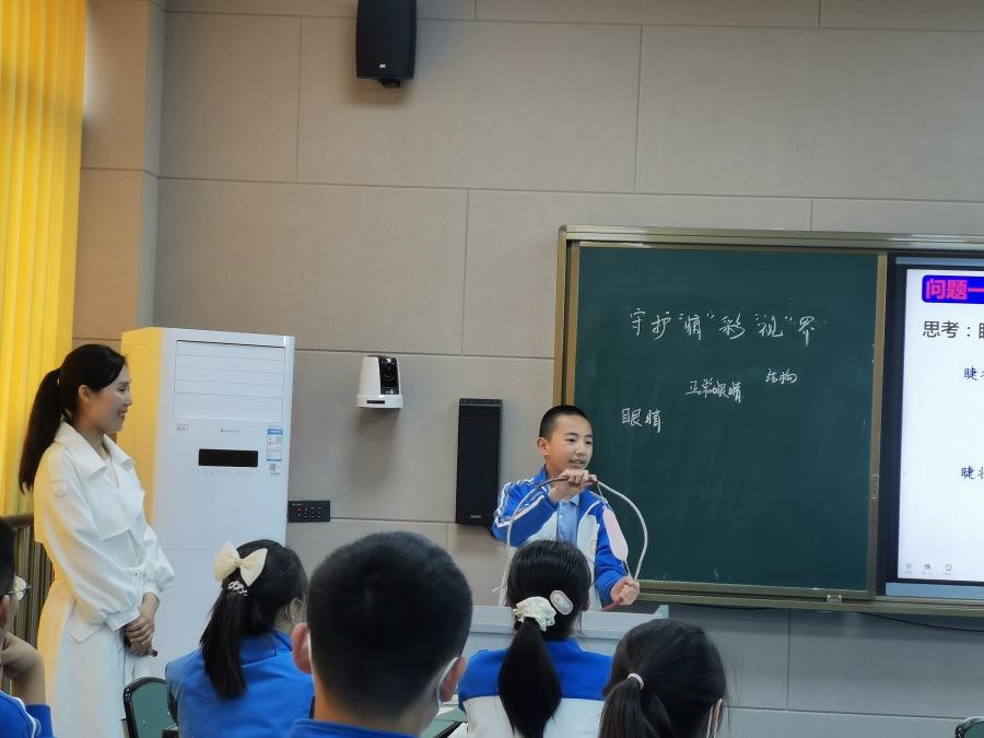 成都立格实验学校物理组王春艳老师展示的以《守护“睛”彩“视”界》为主题的健全人格学科课。通过新闻和相关文件,结合学生采访校医和眼科医生的相关数据,在这一系列的活动体验和实验探究中,让学生结合事物本身存在的现象,通过逻辑推理、抽象思维及模拟实验找寻规律,增强学生科学探究意识和理性认知的科学思维以及严谨治学、求实创新的科学态度。