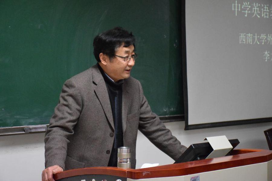 李力教授给我们带来的是题为《新课标理念下的中学英语教材设计解读》的讲座。李教授从教材的编写依据,现行教材编写存在的不足,我国学生的发展现状,英语课程的性质和任务,以及专业的理论讲解二语和外语的关系等方面进行了详细阐述。