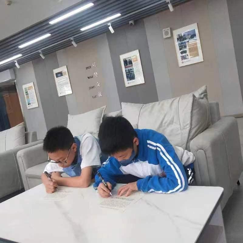 三、七年级同学在认真填写《食堂问卷调查表》。