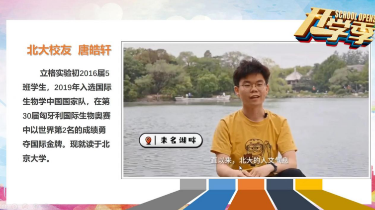 在立格实验这片成长的沃土,一届届校友来到这里追逐梦想,又从这里扬帆驶向更加恢弘的星辰大海。北大校友唐皓轩、立格首届高中清华校友白冉筱和立格高中优秀学生代表李鹏宇为全校学弟学妹们送上了新学期寄语。