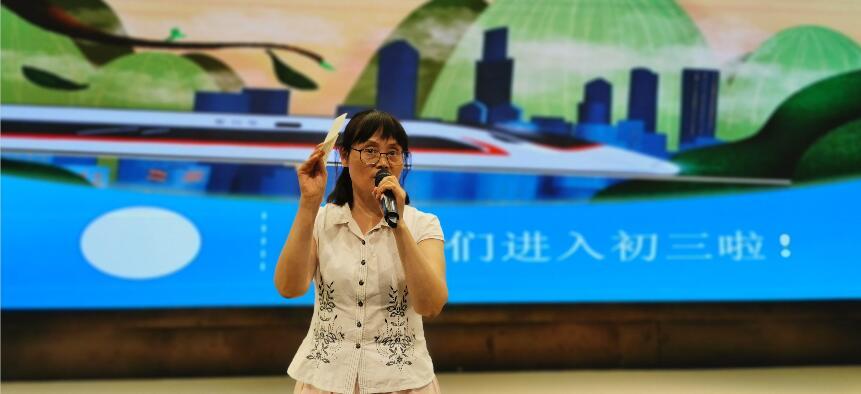 德育处王主任致辞,她希望初三学子们能一如既往地将规则内化于心,践行于行。