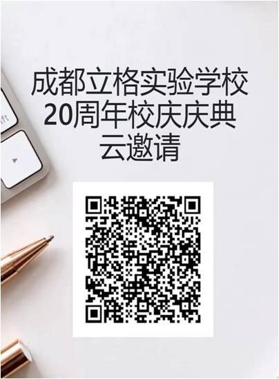 2023年11月4日(周六),成都立格实验学校将举行建校20周年校庆庆典,学校诚盼历届校友以及曾经在这里工作过的教职工重返母校,共商母校发展大计,畅叙立格同窗友情。能够按时回到母校参加庆典活动人员,请主动点击识别二维码,按提示填写相关信息。