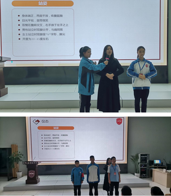 二十载栉风沐雨,踔厉笃行;二十载桃李葳蕤,芳华成蹊。我校用二十年时间,从一所新建学校成长为素质教育闻名全国的优质名校。2023年11月4日,学校将举行庆典庆祝建校二十周年。为在校庆当天更好地服务参加庆典的来宾,学校在八年级征集组建了校庆服务志愿队,他们将和学生会干部一起当担起校庆服务引导工作。10月29日晚,德育处邀请我校2011届优秀校友--成都银杏酒店管理学院休闲与运动学院分团委书记刘娜老师为校庆志愿者们作了专业的礼仪培训。