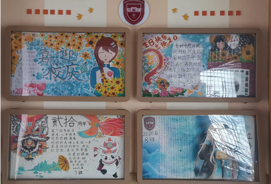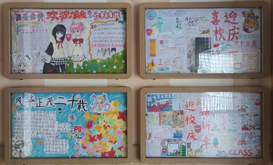 在学校建校20周年之际,我校各班开展了本学期第二次班级文化建设活动。此次班级文化建设以建校二十周年校庆为主题。同学们发挥自己的艺术才华,通过绘画创作班级校庆主题展板,表达内心对学校的热爱和祝福之情。
