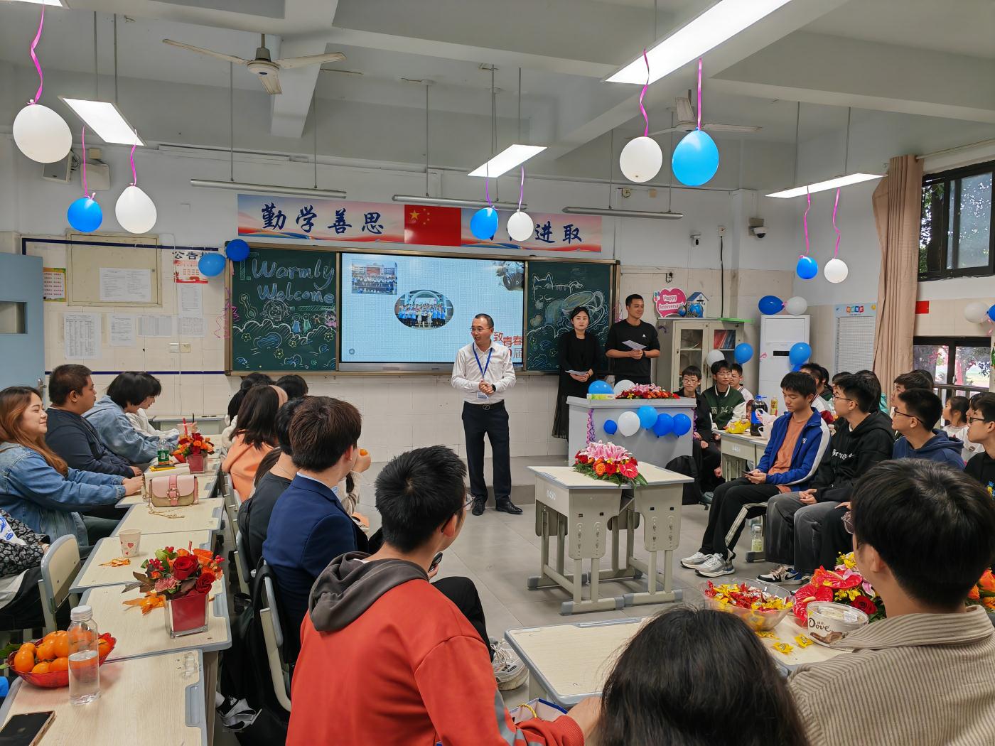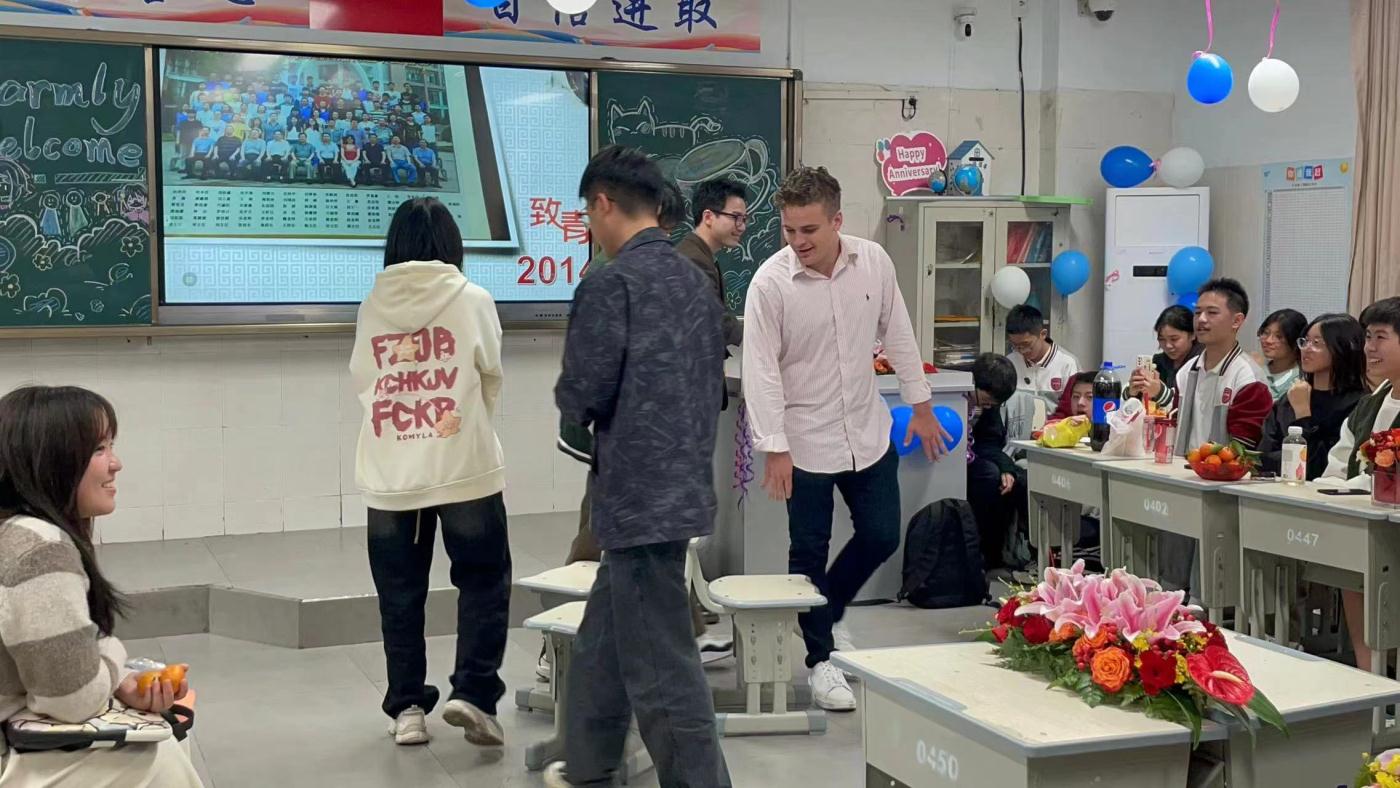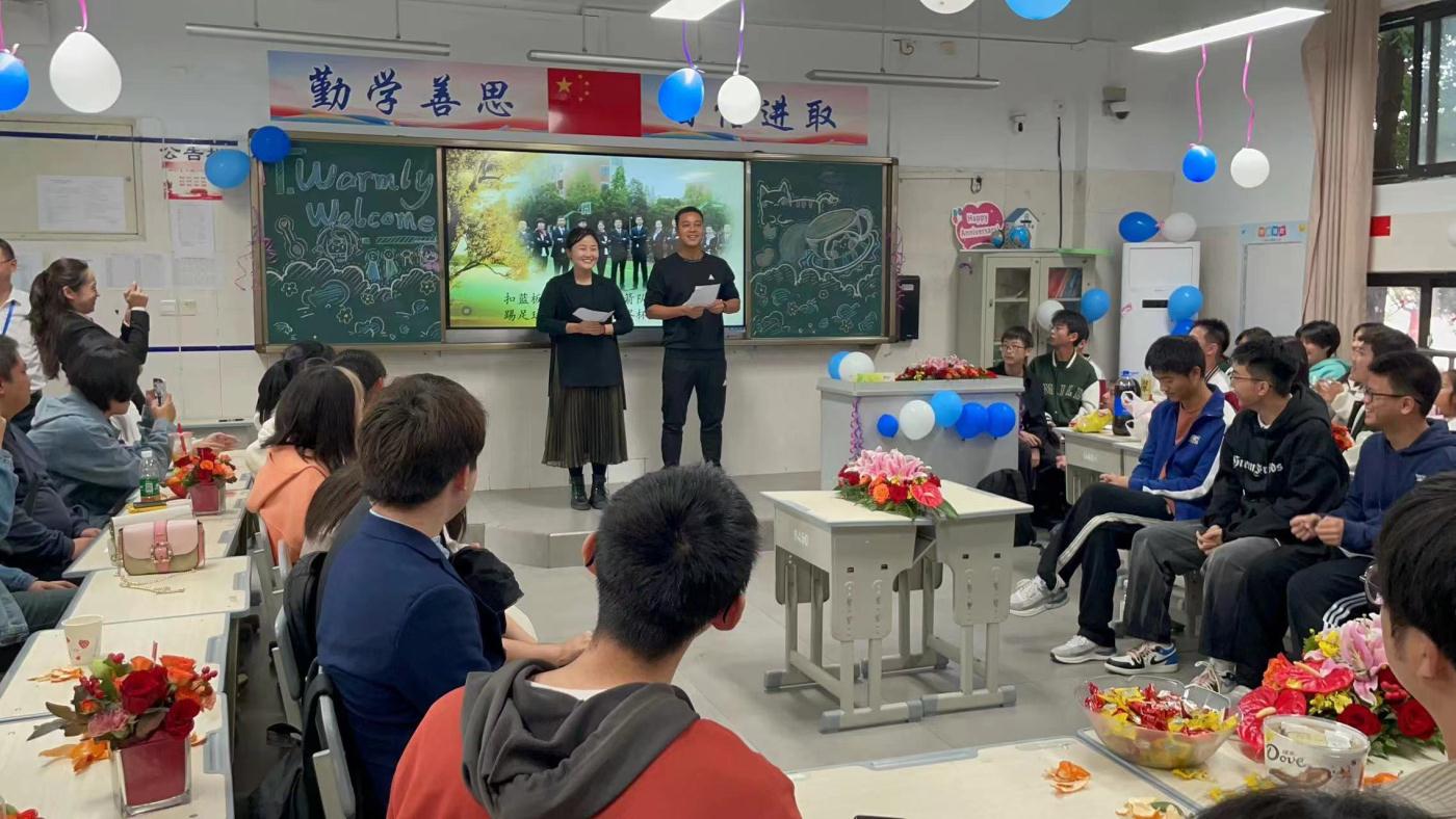 留学生艾迪也积极参与到抢椅子游戏中。2016年3月至6月期间他曾在我校交流学习,多元的文化环境、包容开放的学习氛围让他深受感动,时隔多年他又再次回到熟悉的母校,继续向他的指导老师何梦婕老师学习汉语,不断深耕自己的汉语能力。
