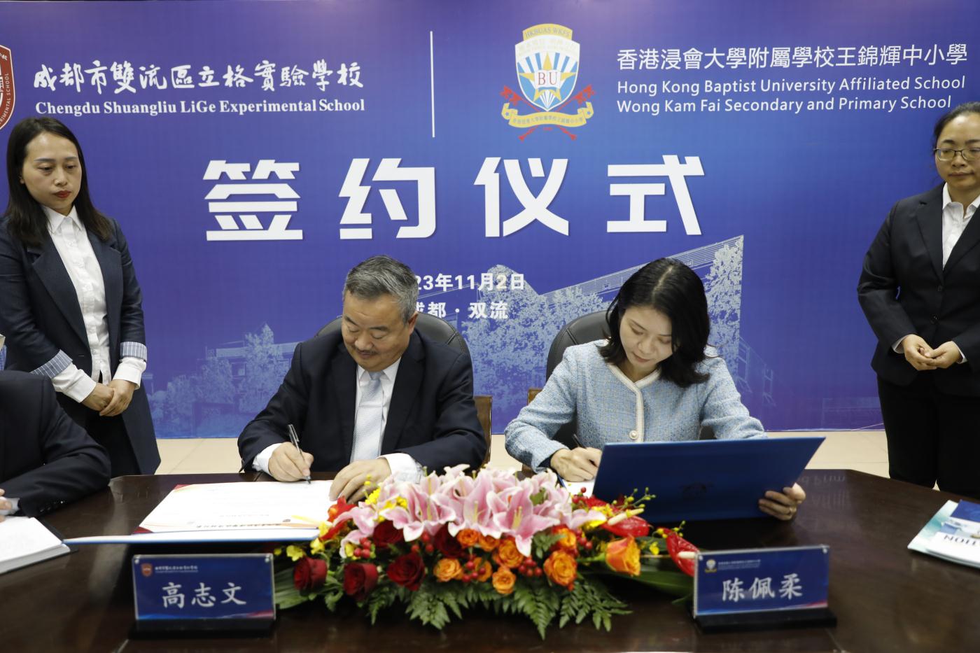 023年11月2日,香港浸会大学附属学校王锦辉中小学一行5人对成都立格实验学校展开为期3天的正式参访交流。立格实验学校教育集团总校长高志文与香港浸会大学附属学校王锦辉中小学协理副校长陈佩柔正式签署教育交流合作协议书,两校正式建立友好协作伙伴学校关系。未来,两校将互派管理团队、学科教师交流彼此在学校管理、课程设置、教学方式、学生活动等方面的经验智慧,同时,两校将互派短期交换生和教师并在高中升学途径上互相交换咨询。