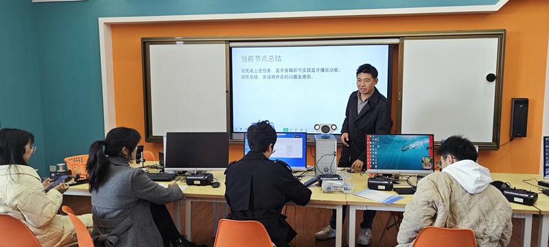 2023年11月13日上午9:00,立格实验学习小组研究性学习课题组的全体老师在初中部创客中心继续开展教师技能培训,我们将教师分组4个小组:第一组,组长罗远均,组员向敏,何翔;第二组,组长张智慧,曹雨娴,王元元;第三组,组长王宗渠,组员李春燕,王一帆;第四组,组长杨荟民,组员李杰,张雅颖。本次培训的主要内容是在已经完成蓝牙音箱电路套材的焊接的基础上,试听蓝牙音响播放声音的音质,实现蓝牙播放功能,并继续优化蓝牙音响的音质。