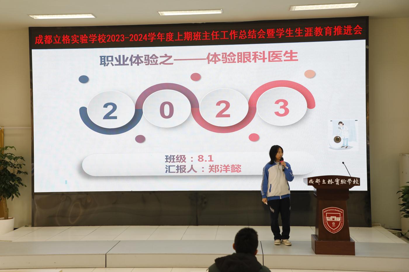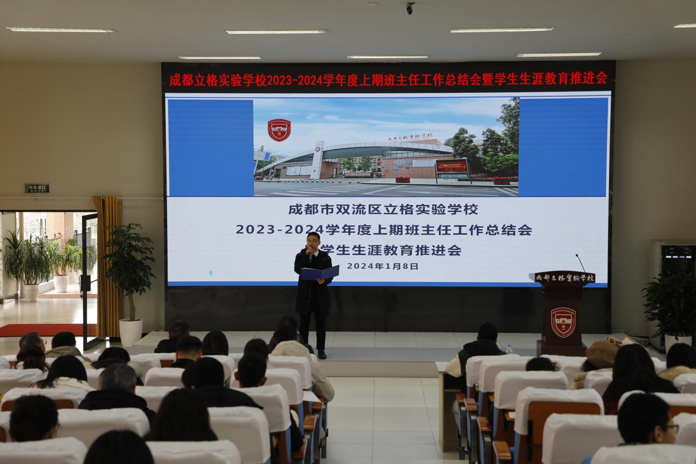 成都立格实验学校于2024年1月8日举办了一场别开生面的班主任工作总结会暨生涯教育推进会。会议旨在落实立德树人根本任务,搭建互相学习、共同提高的交流平台,促进班主任教师和导师队伍的专业成长,推动我校生涯规划工作,增强我校德育工作实效性。本次会议由德育处主任助理王俊老师全程主持。