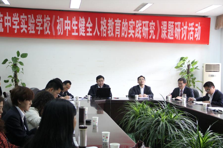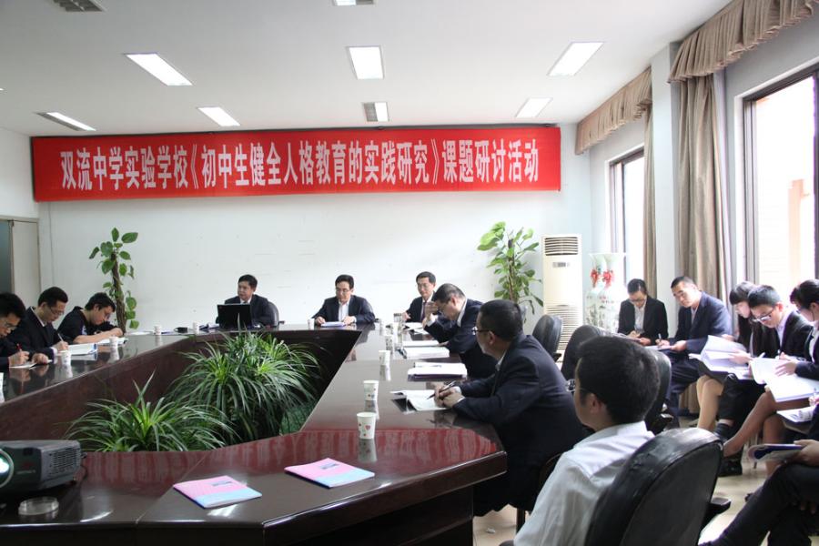 2015年4月13日,双流中学实验学校《初中生健全人格教育的实践研究》课堂教学研讨会在学校学术厅举行,首先由数学组蔡平老师上一堂研究课。蔡平老师根据学校课题《初中生健全人格教育的实践研究》与数学组子课题《初中数学教学与学生健全人格的培养研究》设计了一堂以学生为中心,以学生探究活动为主线的教学课,课堂上学生积极思维,踊跃探究,自主合作。课后,蔡老师围绕课模和健全人格教育说课,八年级数学备课组老师围绕课模和健全人格教育谈集体备课情况。这堂课还吸引许多非数学学科的教师参与听课和评课。