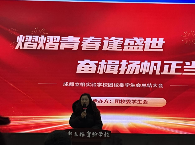 2024年1月21日,成都立格实验学校团校委学生会2023-2024学年度上学期总结大会在学术厅召开。初中部德育处主任王敏蓉、德育处主任助理、团校委书记王俊、德育处彭钰老师以及全体学生会干部参与此次会议。