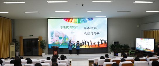 随后,两名学生代表向家长们吐露了心声。孩子们回忆小时候与父母无话不谈的往事,倾述了现在与父母无话可谈的困惑;表达了从父母眼中的乖宝宝到总是出错的失落,衷心希望爸爸妈妈们能用更尊重,更包容、更理解,更和谐的方式交流与自己交流。