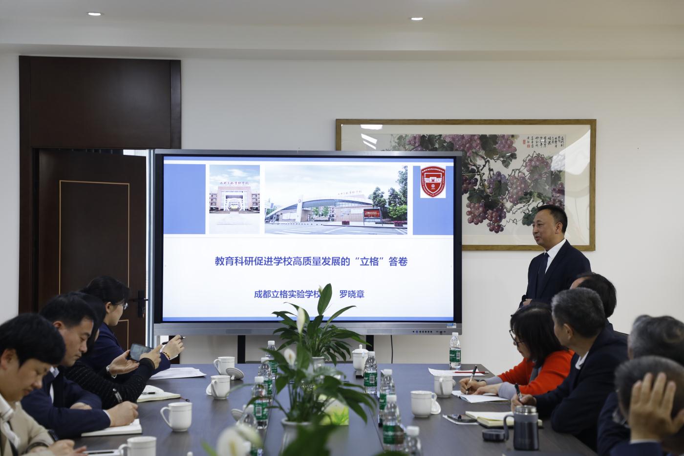 之后,中学部副校长罗晓章就“教育科研促进学校高质量发展的‘立格’答卷”作了主题交流发言。他强调,立格实验学校始终坚守以学生发展为本的教育理念,将立德树人作为根本任务,致力于教育教学质量的提升和师生全面发展。学校秉承“以研促改,研用并重”的原则,注重将科研理论与教学实践相结合,通过科研的引领作用,推动师生自主成长,进而促进学校的内涵式发展。