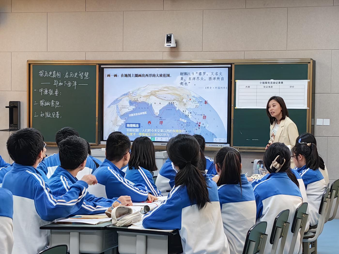4月1日,在健全人格课题组推动下,历史学科进行了课例展示与研究,晋云萍老师就《郑和下西洋》进行了学科教学实践。