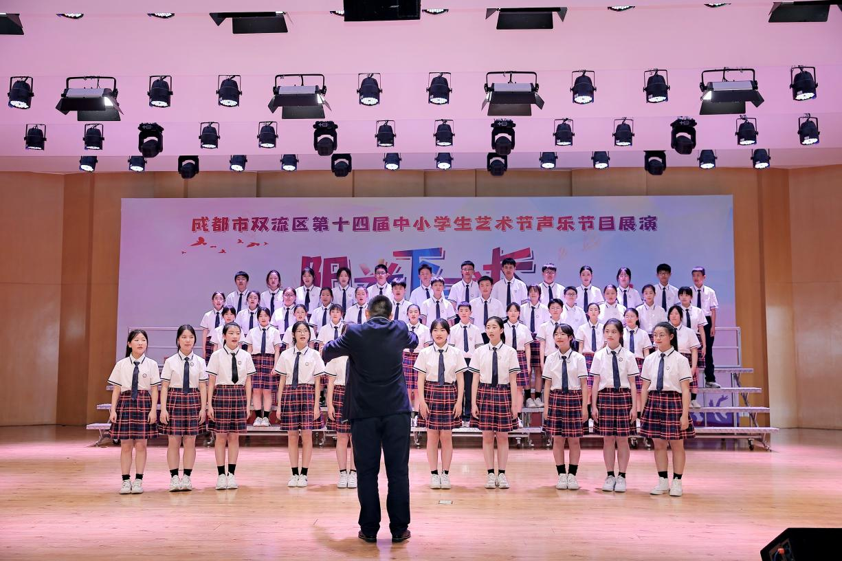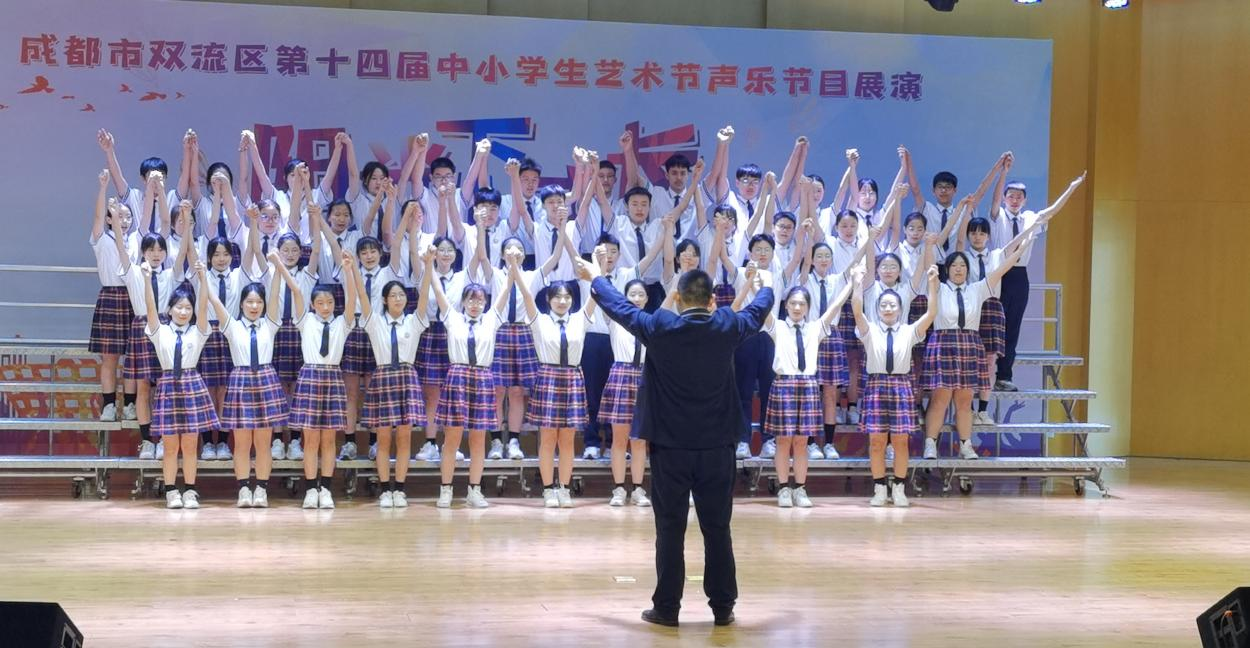 2024年3月27-28日,由区教育局主办的“阳光下成长系列活动暨成都市双流区第十四届中小学生艺术节声乐节目展演”在四川省双流艺体中学顺利举行。本次艺术节声乐节目展演汇聚了全区37所小学、21所中学的99支代表队,共计4000余名学生参与其中;分为合唱团合唱展演与班级合唱展演。八年级四班代表我校初中部参加了班级合唱展演的角逐,并以一曲红歌《映山红》、一首红十字会公益歌曲《和你一样》获得中学组一等奖。