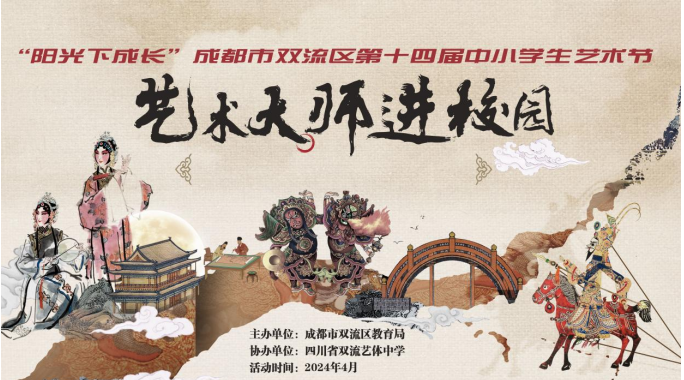 为落实立德树人根本任务,弘扬社会主义核心价值观,植根中华优秀传统文化深厚土壤,引导学生树立了正确的审美观念、陶冶健康的审美情趣、培养良好的艺术修养,成都市双流区教育局组织了“阳光下成长”——成都市双流区第十四届中小学学生艺术节艺术大师进校园活动。