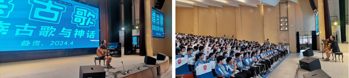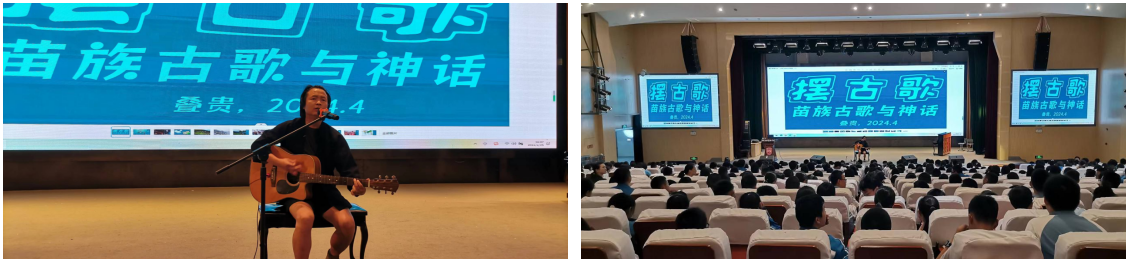 4月26日,苗族音乐人叠贵老师来到我校,向同学们宣传介绍苗族古歌和苗族传统文化。叠贵老师长期关注苗族文化的当代意义及其呈现,坚持苗语文学和音乐创作,进行了多路径的探索与实践。
