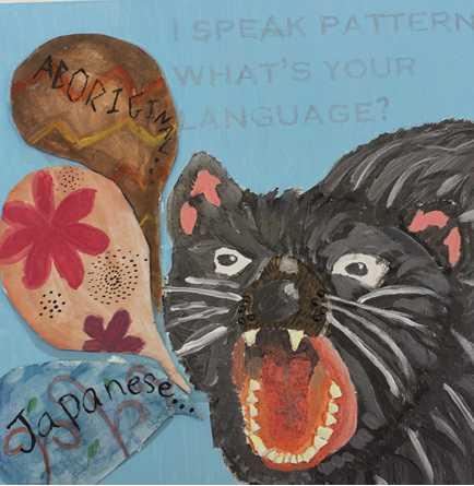 This piece was produced by a 13 year old looking at fusing cultural patterns and ideas from Aboriginal and Japanese Art.