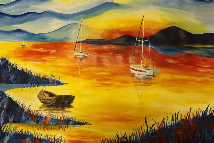 An expressive look at a waterscape by a 15 year old GCSE art student.