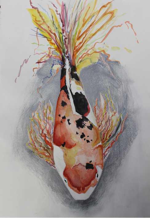 Taking inspiration from Japanese koi carp, this is a preliminary study for a painting by an A level Art student.
