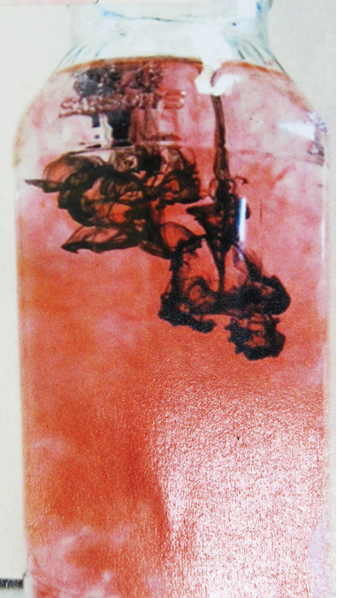 Examples of the students milky ink diffusing into a jar of water, reminiscent of traditional Chinese brush painting