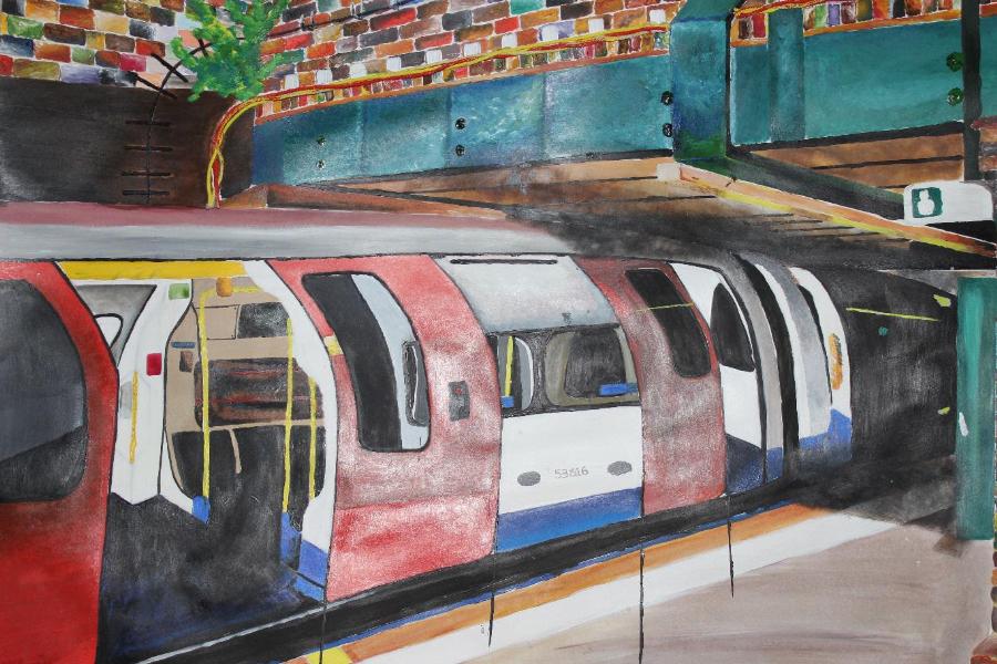 Although not that close to London, lots of students enjoy taking imagery from the capital to use as their inspiration. This student has created a piece with an injection of colour at this tube station to brighten up the mundane commute into the city.