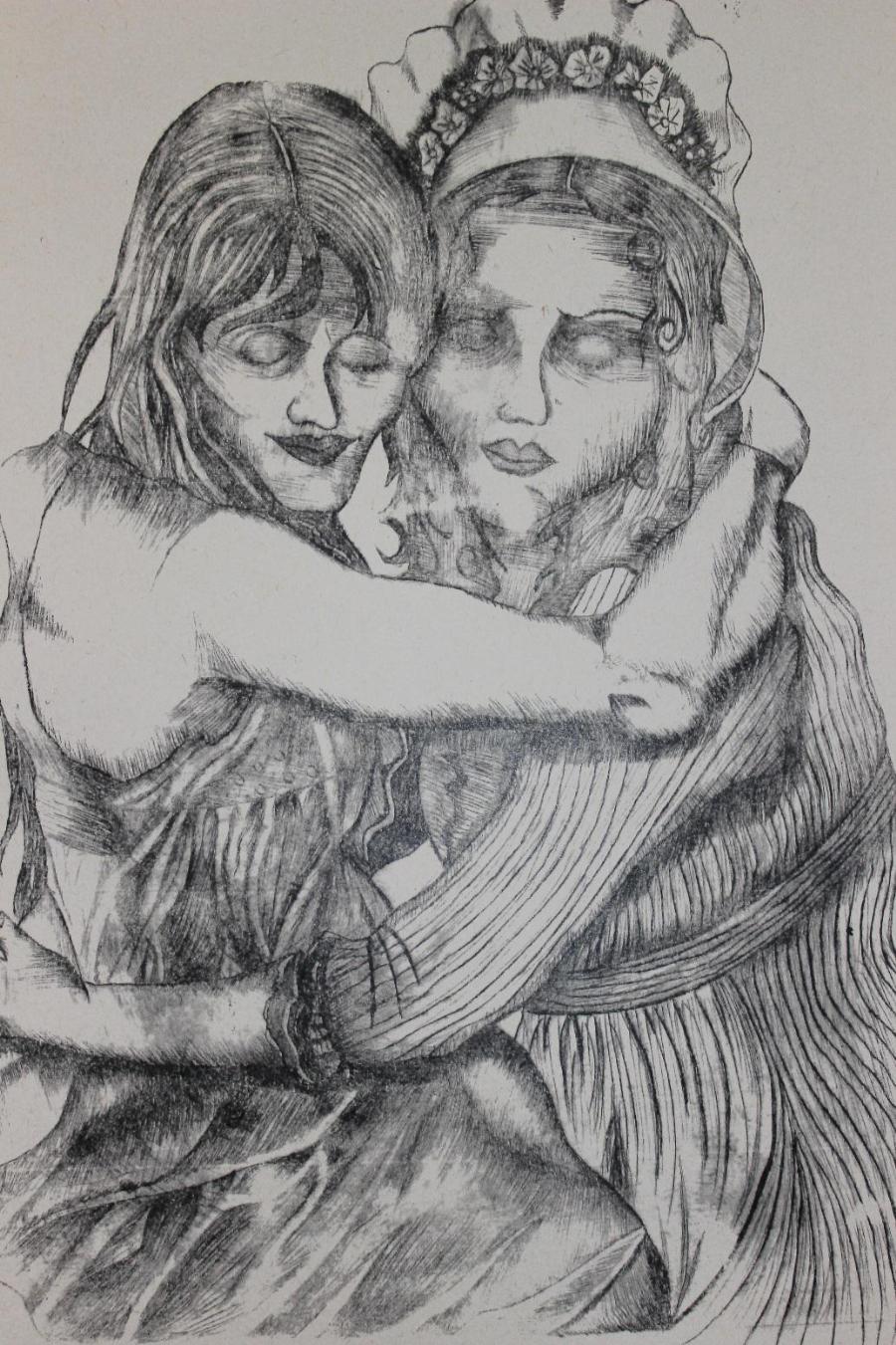 This student was a passionate English literature student, who used the works by Gothic novelists to create this period piece. It is an etching, oil based ink on paper.