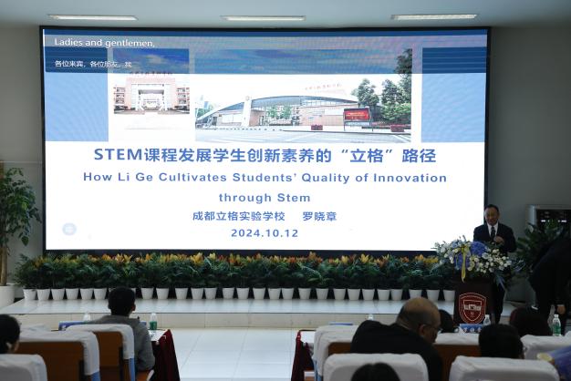 2024年10月12日由成都市双流区立格实验学校承办的“一带一路”沿线国家教育行政人员高级研讨交流活动如期举行。该活动主题为“Teachers for STEM”。来自“一带一路”沿线14个国家的27位教育行政人员和学者、联合国教科文组织教师教育中心李睿淼博士、成都市教育科学研究院黎丙成副所长、成都市教育科学研究院李宜芯博士、双流区教育局党建与宣传外联科负责人王茂霖女士、成都市双流区立格实验学校中学部执行校长龙清明、集团外事部部长杨红、中学部副校长罗晓章出席了本次活动,活动由龙清明校长主持。出席本次活动的还有60余名成都市STEM课程种子教师和40余名双流区兄弟学校的领导和教师。