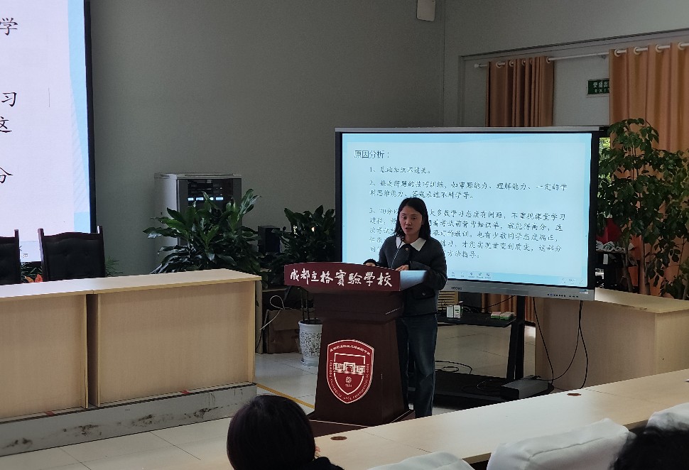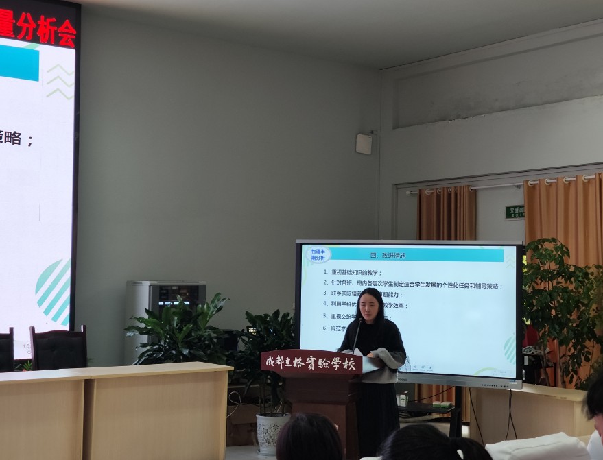 各备课组代表就本次考试的试题结构、考试范围、A、B卷得分情况以及本次检测中凸显的优缺点,进行了深入的分析。数学组牟顺成老师、英语组杨劫老师、物理组韩媛媛老师分别就课堂教学优化、学生“双基”提升、学生学习习惯及思维能力提升等方面提出了一系列相应措施,致力于帮助学生应对学习中的挑战,促进学生核心素养提升。雷智老师代表生物和地理教研组,针对考试中存在的问题,分别提出了具体的改进措施。廖红老师代表道德与法治、历史两个学科做半期检测分析,她强调,道德与法治、历史学科的价值绝非局限于考试分数,而重在日常生活里的德育渗透作用,它能够滋养学生心灵,为学生的健全人格培养提供坚实基础。
