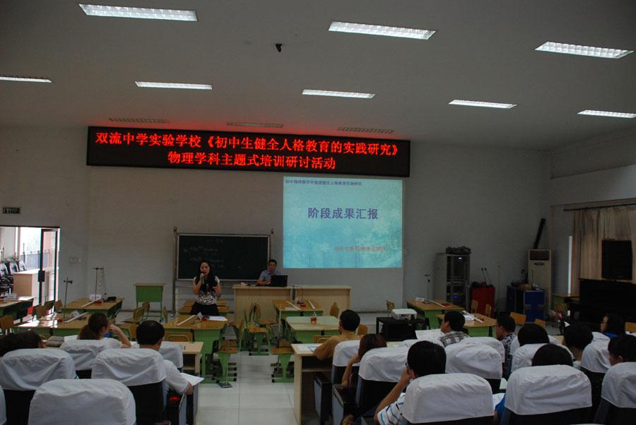 接着由罗远洋对物理组开展《物理课堂教学中渗透健全人格教育研究》的进展情况进行了汇报。罗老师从该课题的初步研究方向、研究措施和途径、阶段成果和效果、研究反思、下阶段研究重点等方面进行了详细的阐述,确定了课题组在下阶段进行理论探讨和实证研究的方向。(物理学科健全人格教育课题组)