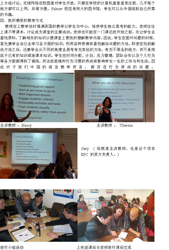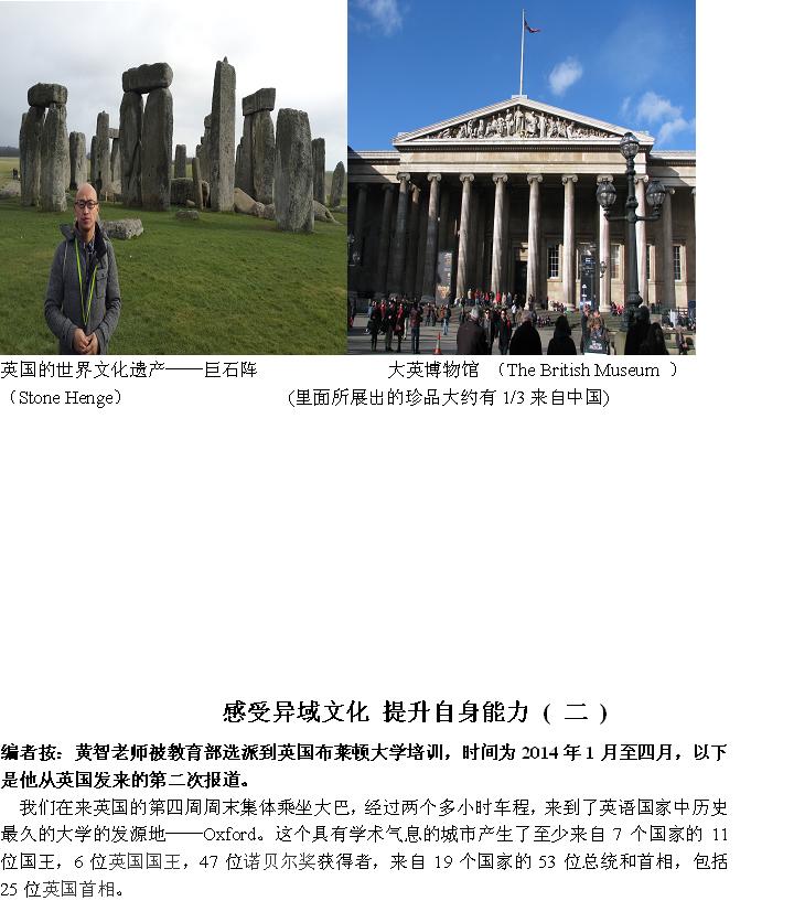 黄智,男,生于1974年8月,大学本科学历,中学英语高级教师。自1994年参加工作以来,已连续担任班主任工作16年。在2003年5月被评为“仁寿县优秀班主任”;2007年3月,所带班级2007级10班被评为“双流县优秀班集体”。在英语教学工作中,踏实苦干,认真钻研教法和学法。能根据“从生活走进英语,从英语走进社会”的课程理念,精心设计课堂教学。既让学生掌握了知识,更让学生经历“知识从哪里来、怎样形成、到哪里去”的科学探究过程,从而培养科学的思维能力。通过二十年的教学实践,不断总结经验,逐渐形成了自己独特的教学风格:诱——探——悟。教学成绩十分突出,所带的每届班级在历次考试中均名列同级学校同类班级第一名。特长辅导也硕果累累,在全国中学生英语基础知识能力大赛中,先后有6名学生获得全国一等奖;18名学生获得全国二等奖,12名学生获得全国三等奖。在做好教育教学工作的同时,积极投身课程改革及学科教育教学科研。近5年撰写的论文分获国家一等奖1篇,省二等奖1篇,市级奖奖6篇,县级奖3篇;课题成果市级一项,县级一项。国家级刊物发表文章4篇,市级1篇。由于教学教研工作优异,分别在2007年9月,被评为“双流县优秀青年教师”;2009年3月,被评为“成都市民办教育先进个人”;2005-2013连续9年被评为双流中学实验学校“名优教师” 。同时在2007年11月被学校派到德国威利勃兰特中学交流学习;2013年6月参加“中小学优秀外语教师出国留学奖金项目”全国统一选拔考试,成绩优异,经国家基础教育实验中心外语教育研究中心批准,于2014年1月18日赴英国布莱顿大学接受三个月的英语语言及外语教学理论、教学方法等方面的培训。