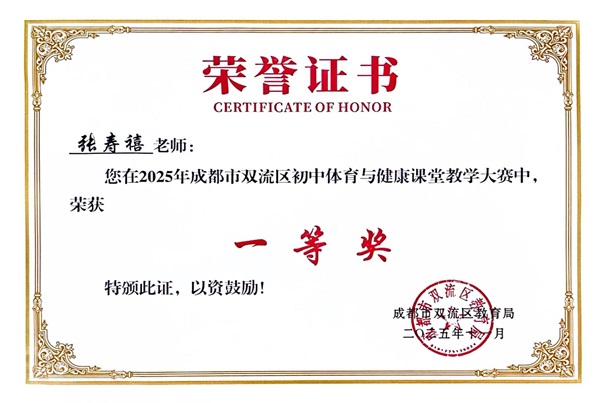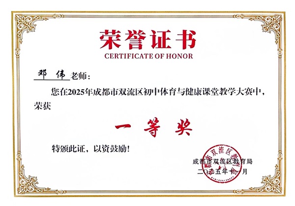 2025年11月,由双流区教育局主办的"2025年成都市双流区体育教师技能大赛"圆满落幕。本次赛事吸引了全区百余所学校的体育教师同台竞技,涵盖理论测试、教学设计、课堂展示、体能测试、教学反思五大核心模块,全面考察教师专业素养。我校体育组教师凭借扎实的专业功底和创新的教学理念,在赛事中喜获多项殊荣: