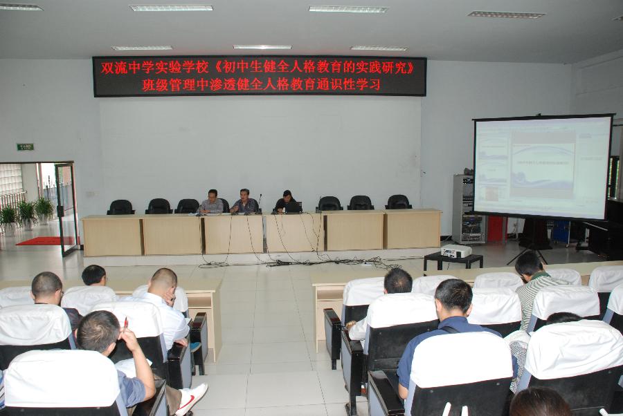 教育的目的,是培养“人”,是让一个“人”拥有更为健全的人格,拥有思考问题、判断问题、处理问题的能力,教育的目的是要一个“人”成为更为完美、更为丰富的“人”而不是其他。基于此,随着我校《初中生健全人格教育的实践研究》的进一步推进,我校“构建以健全人格为核心,全员参与的德育课程化体系”相关工作也将进入一个新的阶段。2015年9月25日下午五时由我校德育处主办,德育处副主任王敏蓉主讲的双流中学实验学校《初中生健全人格教育的实践研究》班级管理中渗透健全人格教育通识性学习会在我校学术演讲厅举行。