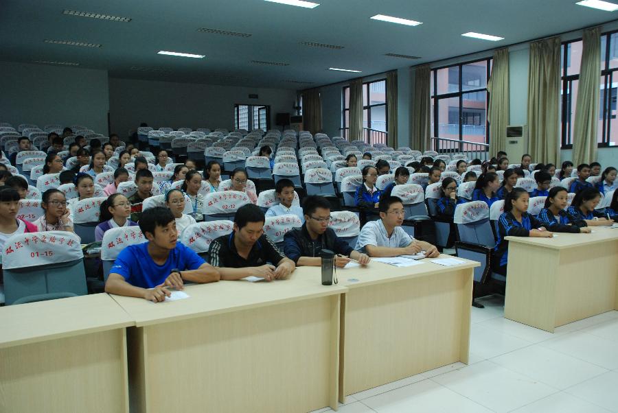 2015年9月29日晚6:20,我校在学术演讲厅举行了2015—2016学年度校学生干部换届选举大会。本次大会的评审团由德育处王敏蓉副主任、学生工作组王俊老师、刘家佚老师、黄德洪老师和吴益锋老师以及七八九年级校级学生干部组成。此次大会,全程秉承着“公平竞争,德才兼备”的原则。整个选举过程庄严肃穆,评审员都十分认真专注的评分。