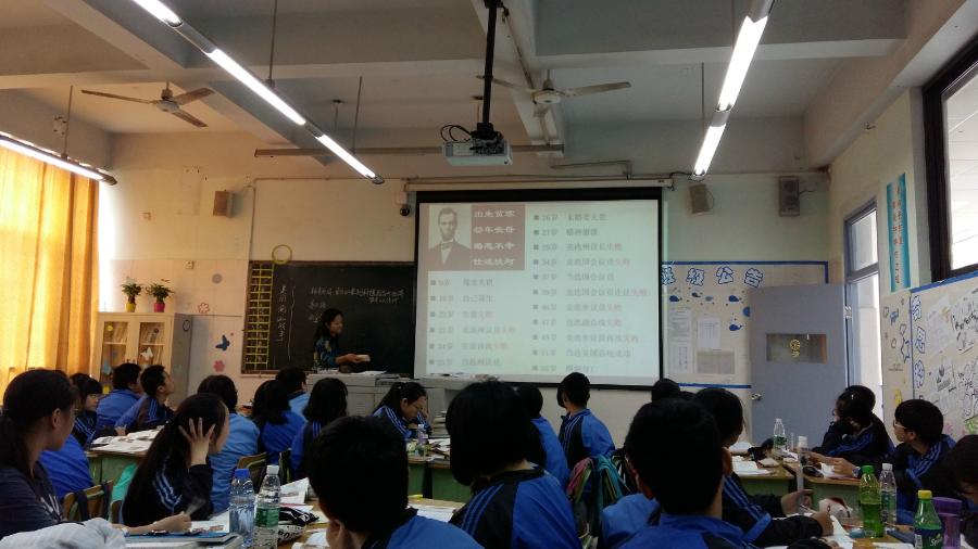 历史对话问题探究式教学模式是指在中学历史新课教学过程中,通过在一定问题情境的支持下,师生从提供背景、发现问题、解决问题、交流成果等方面来组织和实施教学的一种教学模式。经过课题组老师近几年不断研究和亲身实践, 历史对话问题探究式教学模式在历史组日常教学中已初见成效。为了给教学模式研究提供更多更好的资源和素材,九月二十五日,九年级银少华老师在九年级三班讲授了美国《南北战争》。