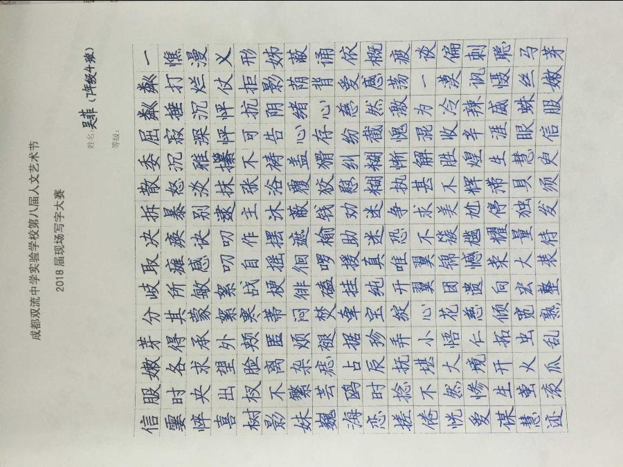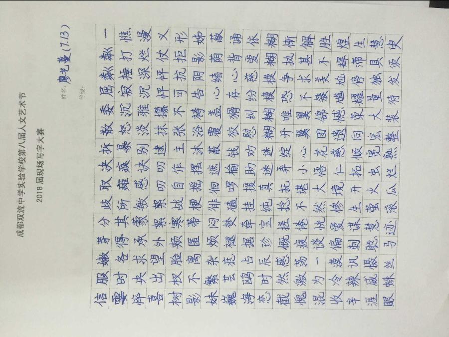 此次活动不仅进一步端正了学生的写字态度,激发了学生写好字的积极性和主动性,为同学们今后养成良好的书写习惯打下了坚实的基础,而且也丰富了我校本届人文艺术节的内涵,充分展现我校素质教育的成就。(七年级语文组报道)