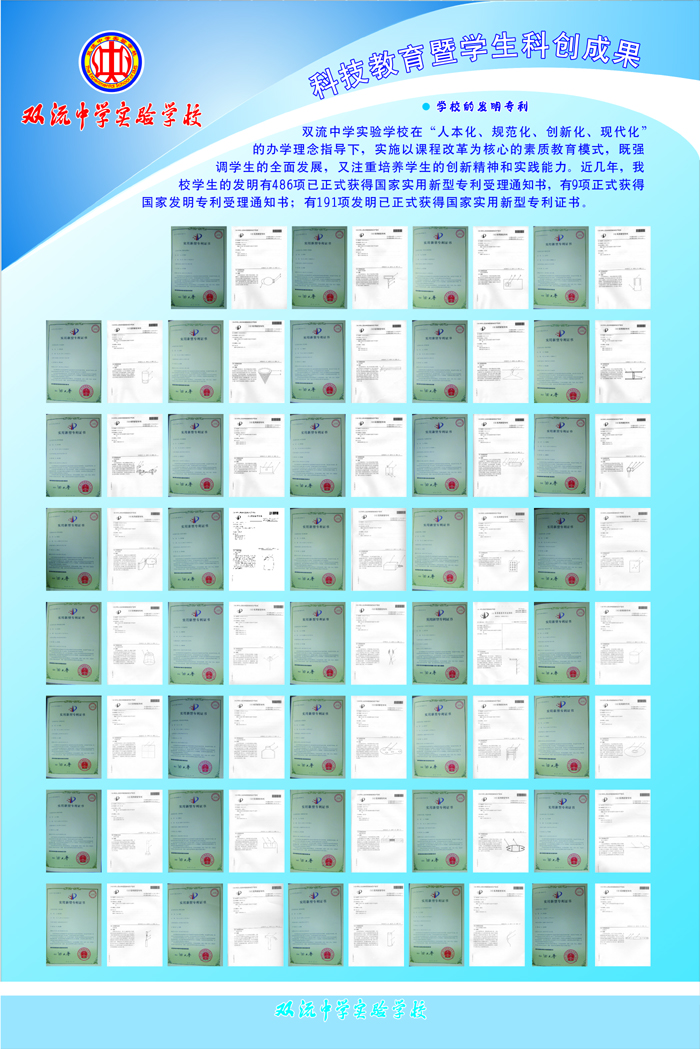 双流中学实验学校学生专利证书