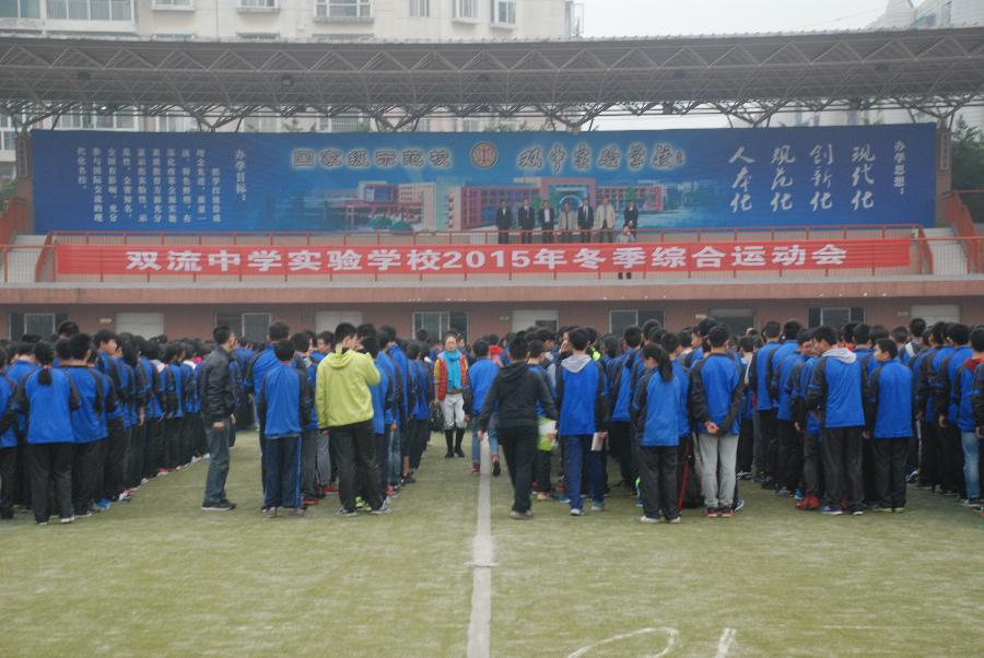 11月6日,我校2015年度冬季运动会在学校体育场隆重举行。本次运动会比赛共设6个单人项目,3个集体项目。包括男女100米、400米、男子1000米、女子800米跑、跳高、跳远、实心球,广播体操决赛、 8字跳绳,50米迎面接力跑等项目,七、八年级二千多名学生参加了此次运动会。