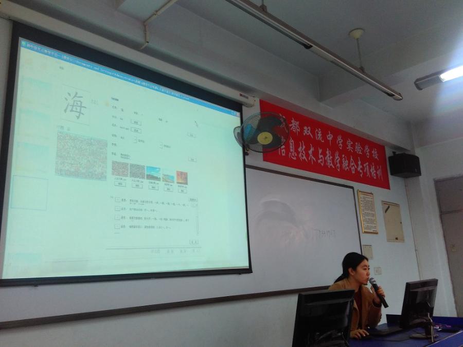 第二,针对语文学科的软件功能如何运用。培训专家着重介绍了软件在语文教学中的应用,从字音字形,素材添加,课件合成等方面进行了讲解。