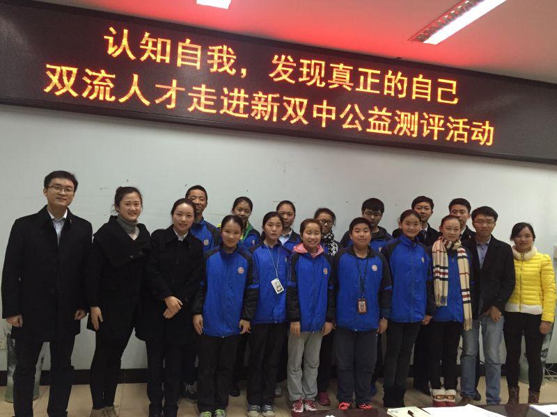 2015年12月2日(星期三)中午,我校思品组小组研究性学习课题组活动在三会议室举行。围绕研究课题双流中学实验学校学生自我认识现状调查,为了帮助课题组成员加强自我认识,本次活动邀请了成都市天府新区双流人才服务有限公司(简称双流人才)的专业人员为课题组成员开展测评活动。