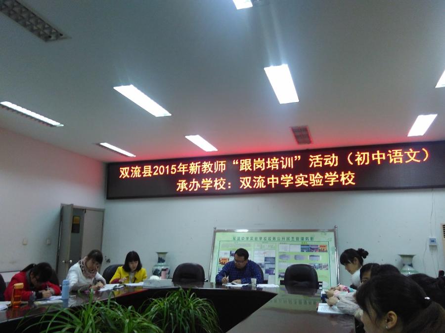 12月3日上午,双流县2015年初中语文新教师在研培中心办公室副主任彭本常的带领下来到我校,三位新老师给我校语文教研组老师献上了三堂精彩的展示课。