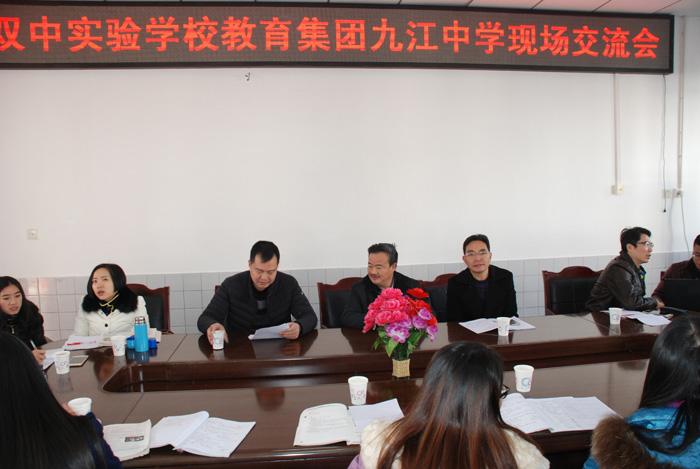 双中实验学校教育集团一直以来高度重视教师交流工作,特别注重老师的成长和发展。集团管委会主任高志文校长亲临交流会现场并作指导,他希望:一、双中实验校结对交流教师要尽职尽责,发挥我校特色,所谓指导,就是在经验和课改方面的指导,要把我校的课改原则、精神、经验、模式多多与九江中学老师分享交流,这是对九江中学老师的指导,也是对我校老师的一种挑战。二、双中实验校在导学案的制作的和使用方面有较强的优势和经验,要加强导学案的指导和交流,可合作制作研究导学案。高校长希望:通过交流活动,促进教师专业化发展、九江初中的教育教学科研、教学改革有所发展,从而促进集团全面发展。