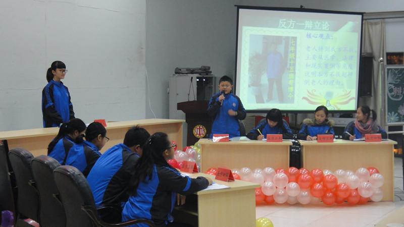 2015年12月29日晚六点半,双流中学实验学校第八届人文艺术节之辩论赛决赛在学术厅隆重举行,校领导高校长、张校长、刘主任、周主任隆重出席,参赛选手的家长、班主任应邀出席。