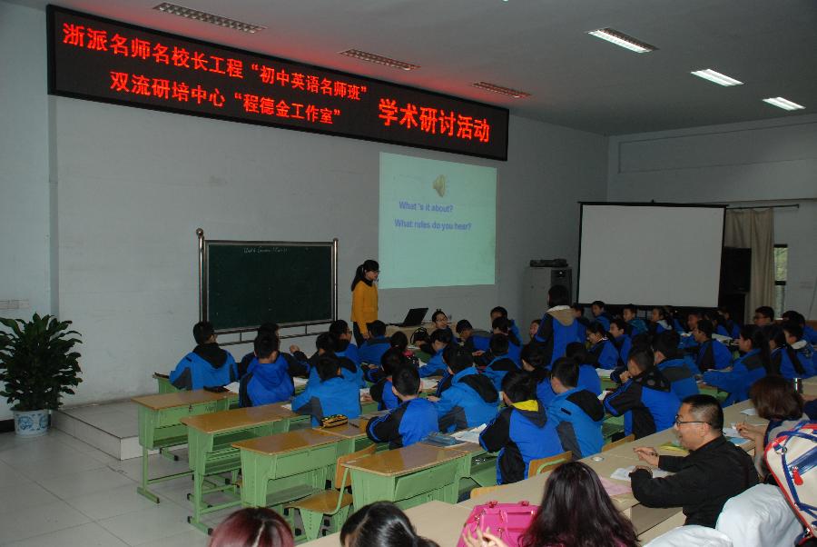 2016年3月24日,浙派名师名校长工程“初中英语名师班”与双流研培中心“程德金工作室”学术研讨活动在我校开展,活动主题是“英语学科核心素养课堂实践研讨”,全体英语组老师参与了活动。